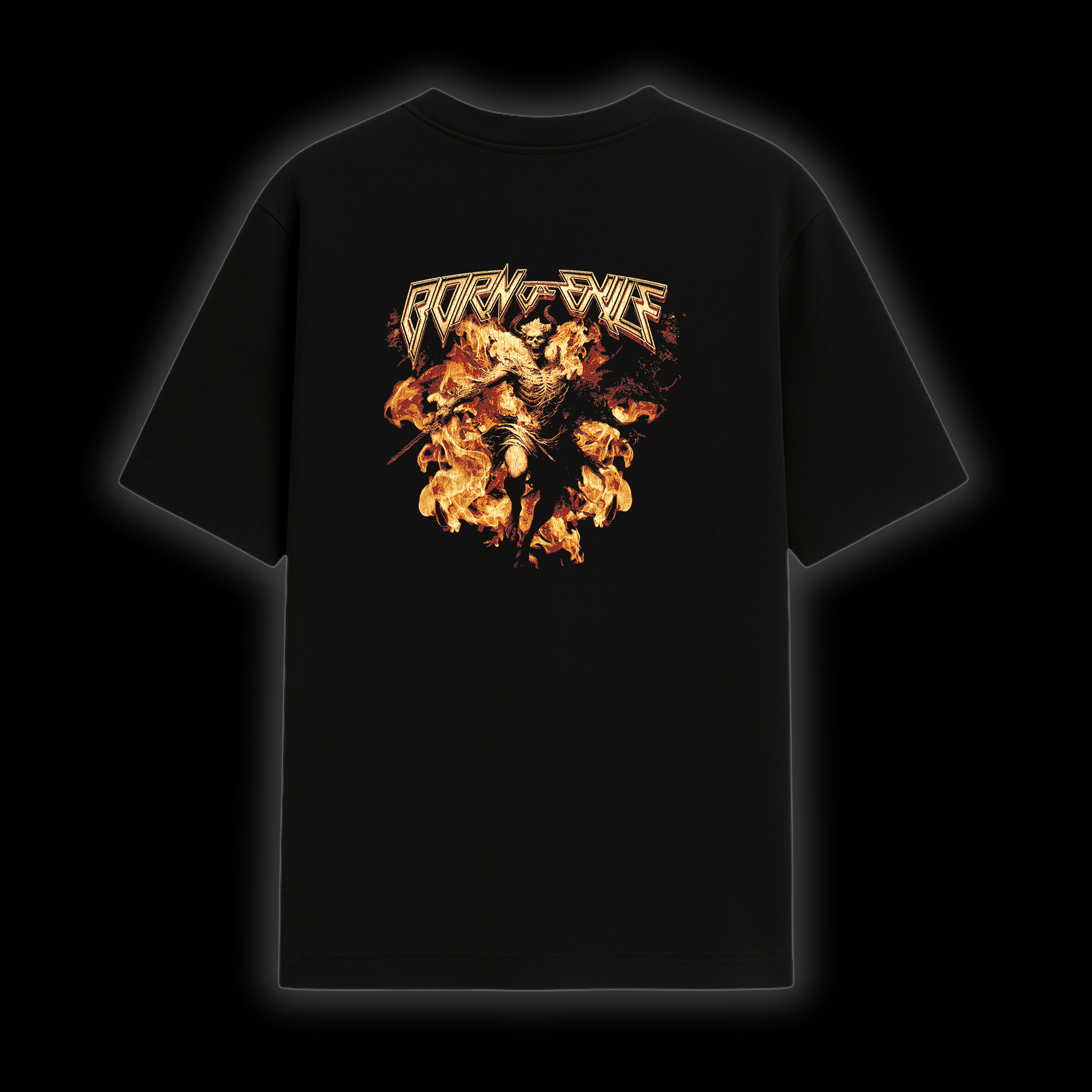 Koszulka z Wzorem "Born Of Exile" - Płomienna Moc i Mroczna Elegancja!