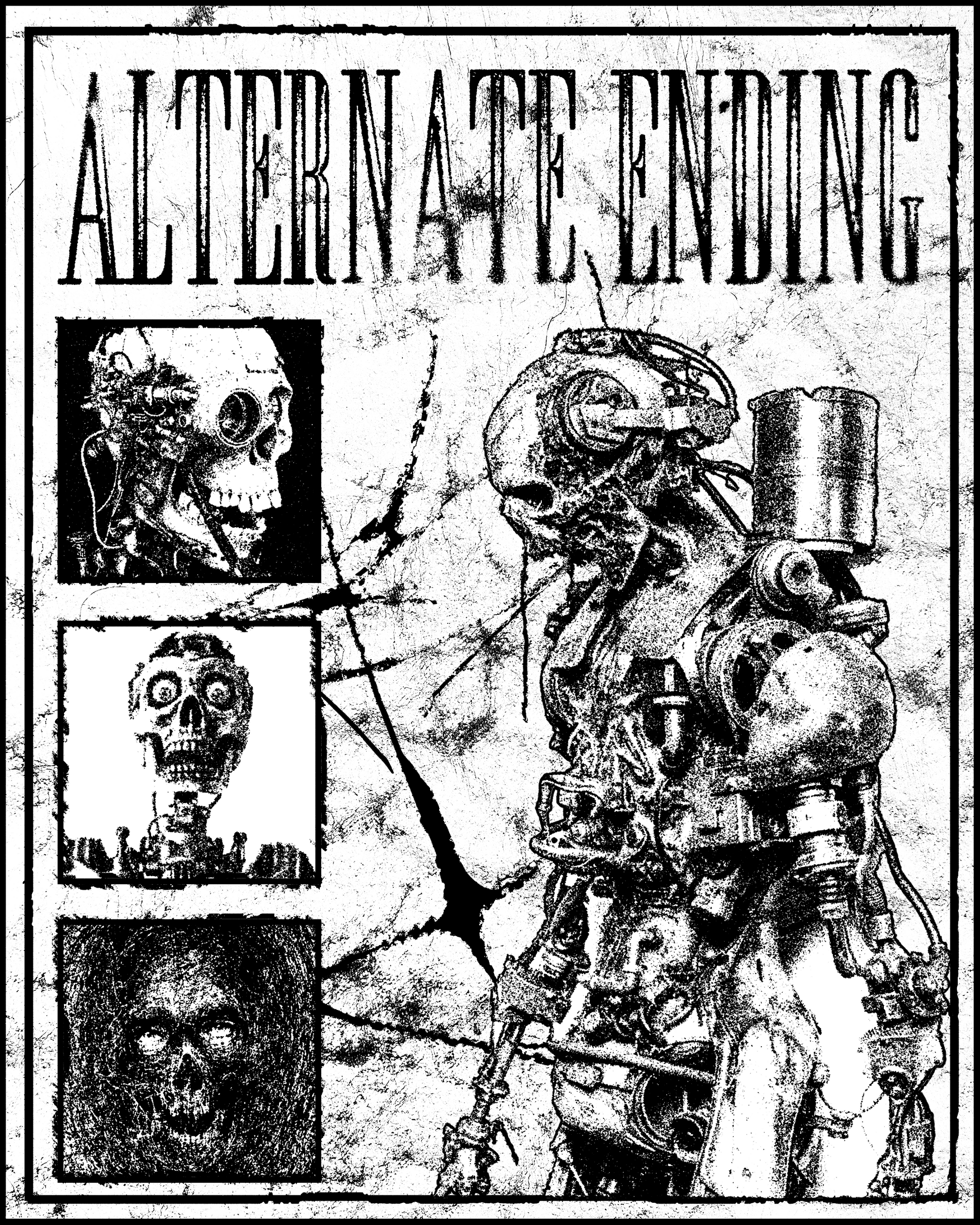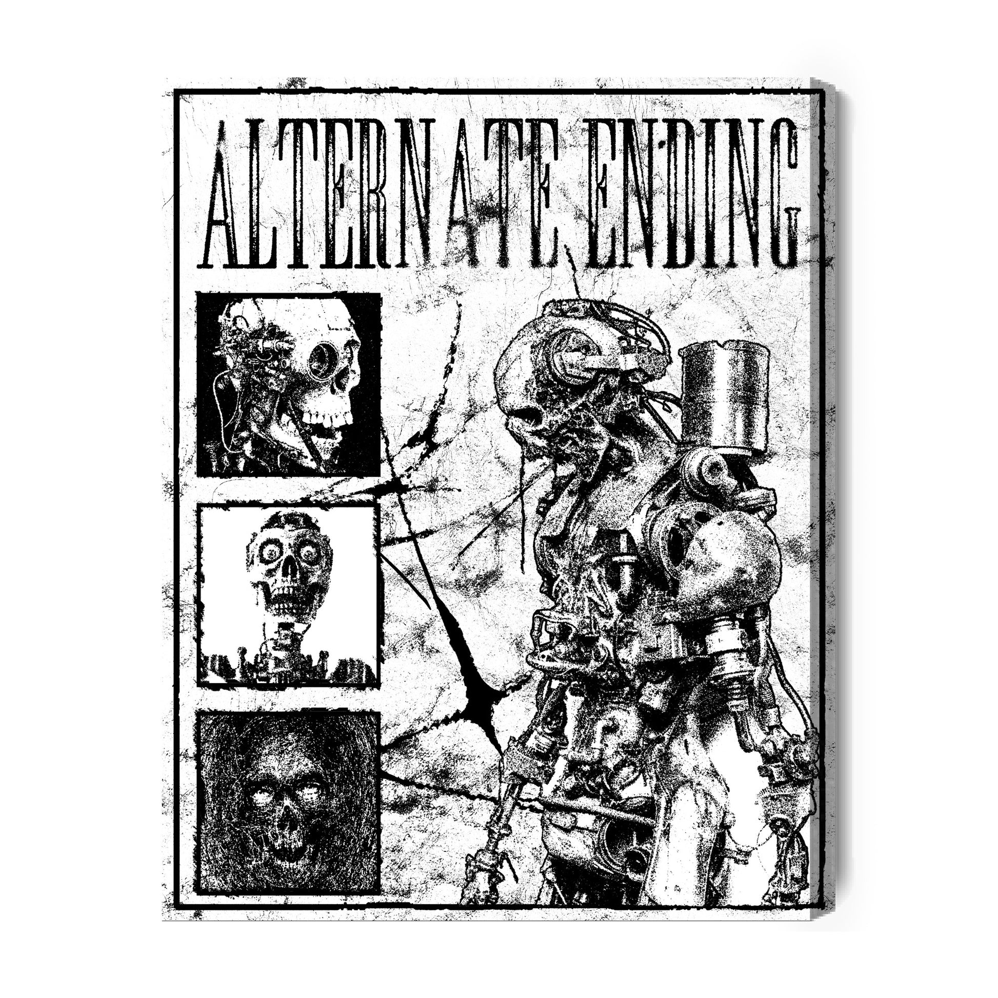 Zanurz się w fascynującym i niepokojącym świecie z obrazem na płótnie "Alternate Ending". Ta unikalna praca przedstawia mroczną wizję przyszłości, łącząc motywy biomechaniczne, czaszki i industrialne elementy. Wyrazista, monochromatyczna paleta czerni i bieli oraz bogactwo detali sprawiają, że ten obraz na płótnie staje się niezwykle intrygującym elementem dekoracyjnym, który przyciągnie każde spojrzenie. Idealny dla miłośników mrocznej sztuki, cyberpunku, stylu industrialnego i alternatywnych wizji przyszłości.